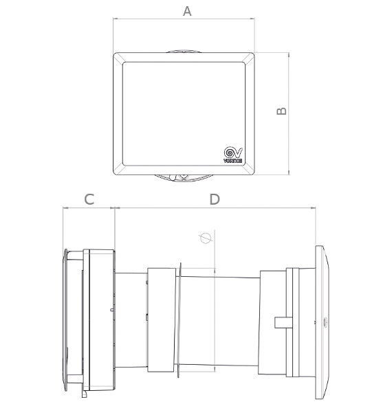 • External rubber grill, which can be installed externally with plugs or internally, through the hole in the wall.