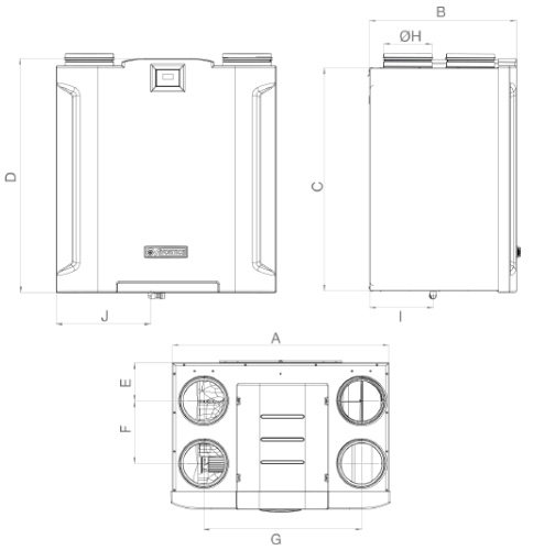 • 2 κινητήρες EC (χωρίς ψήκτρες), εξωτερικός ρότορας, ελεγχόμενος σε σταθερή ροή αέρα, με άξονα που περιστρέφεται σε ρουλεμάν για να παρέχει λειτουργία «χωρίς συντήρηση», ο καθένας συνδεδεμένος με μια φυγόκεντρη πτερωτή με καμπύλη προς τα εμπρός. 4 ταχύτητες, ανεξάρτητα ρυθμιζόμενες κατά την εγκατάσταση.